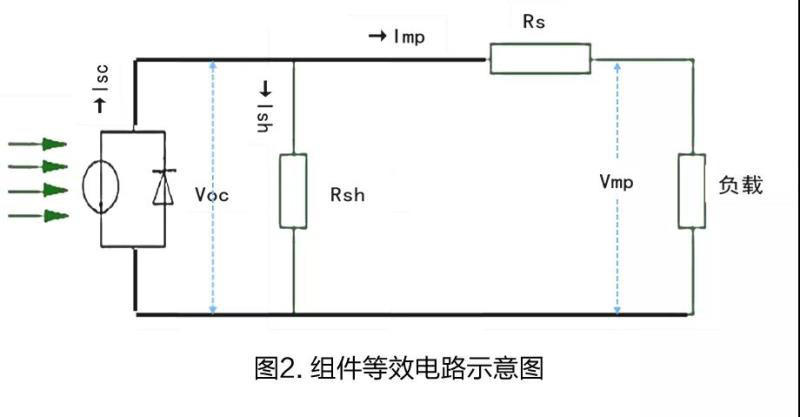 a) 實際電路要復雜得多,圖中標示的串聯(lián)電阻(Rs)和并聯(lián)電阻(Rsh)不同于常規(guī)意義上的電阻。實際的電路中導致壓降的因素很多,如電池、漿料、導體的內阻及電路連接的接觸電阻,標示的串阻實為各類阻抗的組合;分流因素也很多,如電池內部或表面雜質、PN結不良、電池或組件局部連通導致的分流,標示的并聯(lián)電阻實為各類分流因素的組合。