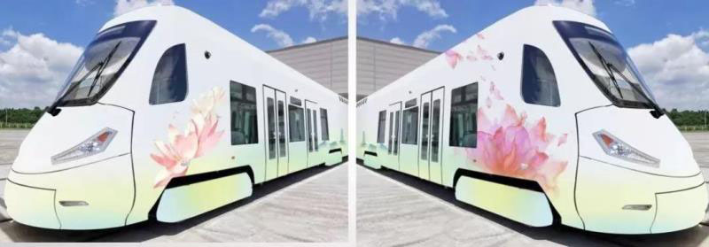高明有軌電車示范線首期工程項目共有5列車,每輛都有不同的主題內(nèi)容。其中,第一輛車體以“荷花”為主題,契合高明荷城“荷花之城”的美譽。其余4列車已經(jīng)整裝待發(fā),目前正在進行車體的裝飾。