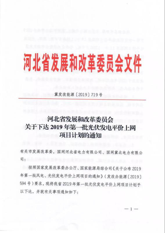5月28日,河北省發(fā)改委發(fā)布《關(guān)于下達(dá)2019年第一批光伏發(fā)電平價(jià)上網(wǎng)項(xiàng)目計(jì)劃的通知》,根據(jù)文件,此次河北省獲批145.8萬(wàn)千瓦光伏平價(jià)項(xiàng)目。