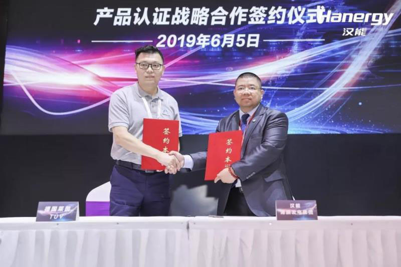 6月5日,在上海新國(guó)際博覽中心W1號(hào)館的漢能展臺(tái)現(xiàn)場(chǎng),漢能與德國(guó)萊茵TüV集團(tuán)(以下簡(jiǎn)稱“TüV萊茵”)正式完成戰(zhàn)略合作簽約。漢能薄膜發(fā)電集團(tuán)副總裁兼首席質(zhì)量官吳迪,德國(guó)萊茵TüV大中華區(qū)太陽(yáng)能服務(wù)副總裁鄒馳騁出席簽約儀式。