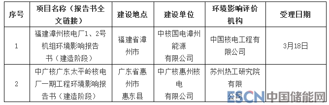 據(jù)生態(tài)環(huán)境部官網(wǎng)3月18日消息,生態(tài)環(huán)境部發(fā)布《關(guān)于2019年3月18日建設(shè)項目環(huán)境影響評價文件受理情況的公示(核與輻射)》,根據(jù)公示信息,廣東太平嶺核電廠和福建漳州核電廠的核電機組預計在6月份開工建設(shè)。