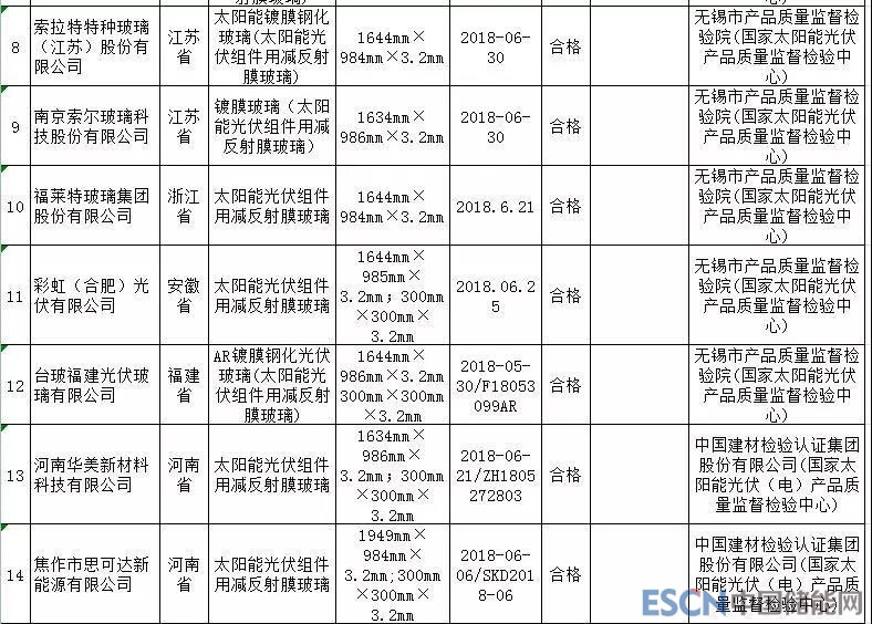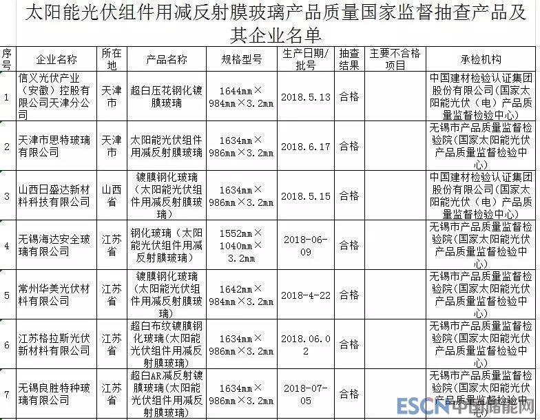 太陽能光伏組件用減反射膜玻璃產(chǎn)品質(zhì)量國家監(jiān)督抽查產(chǎn)品及其企業(yè)名單