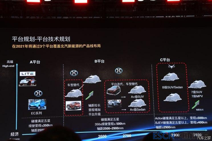 在隨后發(fā)布的“2025中長(zhǎng)期技術(shù)規(guī)劃”,北汽新能源對(duì)公司未來(lái)技術(shù)平臺(tái)、動(dòng)力系統(tǒng)發(fā)展等進(jìn)行了介紹。平臺(tái)技術(shù)規(guī)范方面,在2021年將通過(guò)3個(gè)平臺(tái)覆蓋北汽新能源的產(chǎn)品線布局;電池系統(tǒng)方面,按照整車平臺(tái)規(guī)劃,逐步推動(dòng)動(dòng)力電池系統(tǒng)的平臺(tái)化,并在2020年末完成電池Pack與整車平臺(tái)的匹配;動(dòng)力總成方面,自2020年起逐步實(shí)現(xiàn)中平臺(tái)電機(jī)的車型覆蓋,2021年開(kāi)始進(jìn)行小平臺(tái)電機(jī)的車型覆蓋;控制架構(gòu)平臺(tái)方面,利用2套控制架構(gòu)實(shí)現(xiàn)全系列產(chǎn)品的覆蓋,隨著Eth技術(shù)的掌握,2022年實(shí)現(xiàn)下一代架構(gòu)的升級(jí)。