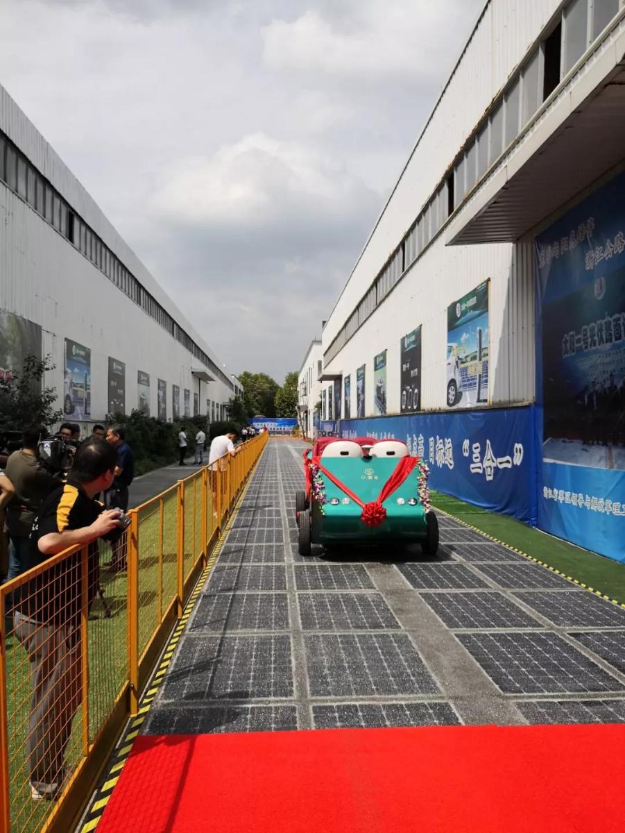 該“三合一”超級(jí)道路示范段的雛形就在紹興蘭亭太陽(yáng)能科技有限公司廠區(qū)內(nèi),全長(zhǎng)98米,寬3.75米,總面積367.5平方米。當(dāng)無(wú)人駕駛電動(dòng)車啟動(dòng)后,在陽(yáng)光照耀下,在太陽(yáng)能道路上緩緩前行。此項(xiàng)目是蘭亭建設(shè)集團(tuán)與浙江蘭亭太陽(yáng)能科技有限公司聯(lián)合中科院寧波材料技術(shù)與工程研究所、清華大學(xué)智慧城市與智慧交通研究中心、天津工業(yè)大學(xué)等研發(fā)單位,歷經(jīng)十年共同研發(fā),近期突破了全套關(guān)鍵技術(shù)難題后取得的階段性成果,將光伏發(fā)電、電動(dòng)智能車輛無(wú)線充電、冬季化冰雪和智能交通技術(shù)融為一體,涵蓋了復(fù)合與交叉的多學(xué)科領(lǐng)域。它是該集團(tuán)2017年6月開(kāi)發(fā)的“太陽(yáng)一號(hào)”重載型試驗(yàn)道路基礎(chǔ)上,深入開(kāi)發(fā)從的系列成果之一,包含了十幾項(xiàng)關(guān)鍵的技術(shù)及配套的裝備技術(shù),包括光伏發(fā)儲(chǔ)電、道路層間的防水防潮、無(wú)線充電的防輻射、屏蔽技術(shù)、無(wú)人駕駛電動(dòng)車智能識(shí)別等。