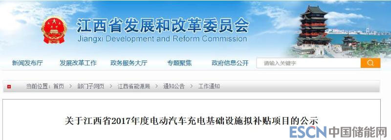 關(guān)于江西省2017年度電動(dòng)汽車充電基礎(chǔ)設(shè)施擬補(bǔ)貼項(xiàng)目的公示