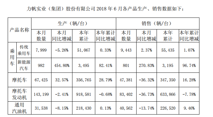 新能源乘用車(chē)方面,力帆股份6月生產(chǎn)982輛,1-6月累計(jì)生產(chǎn)3495輛,累計(jì)同比增長(zhǎng)82.41%;6月銷售801輛,1-6月累計(jì)銷售3195輛,累計(jì)同比增長(zhǎng)96.74%。