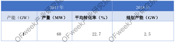 其次是有望后來者居上的HIT電池,2017年國內(nèi)HIT電池已經(jīng)形成產(chǎn)能1GW,但是產(chǎn)量有限,僅為60MW,平均轉(zhuǎn)化效率為22.7%,預(yù)計2018年將迎來異質(zhì)結(jié)發(fā)展元年,2018年規(guī)劃產(chǎn)能將為2.5GW,總產(chǎn)能將達到3.5GW。