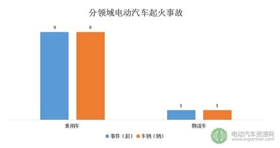 分領(lǐng)域來看,乘用車領(lǐng)域依然是電動汽車起火事故高發(fā)的領(lǐng)域,上半年乘用車領(lǐng)域發(fā)生起火事故9起(占總量的90%),涉及車輛9輛;物流車領(lǐng)域發(fā)生起火事故1起(占總量的10%),涉及車輛1輛。而客車領(lǐng)域并未爆出事故。