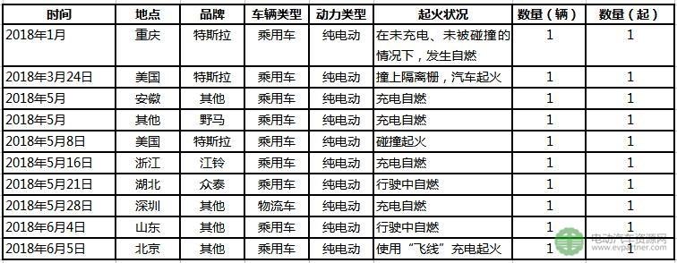 以下電動汽車資源網(wǎng)盤點今年上半年電動汽車行業(yè)的起火事件,以作警示。
