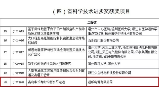 中國儲能網訊:4月11日,2017年度浙江省科學技術獎勵大會在浙江省人民大會堂舉行,由超威集團承擔的省級新產品試制計劃項目“高功率長壽命均衡水平電池”項目獲得浙江省科學技術進步二等獎,受到大會隆重表彰。這是超威集團堅持科技創(chuàng)新、加快轉型升級結出的又一碩果。