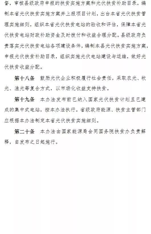 補(bǔ)貼方面,執(zhí)行國家光伏扶貧價(jià)格政策,不參與競價(jià),優(yōu)先納入補(bǔ)貼名錄,原則上次年一季度前發(fā)放到位。