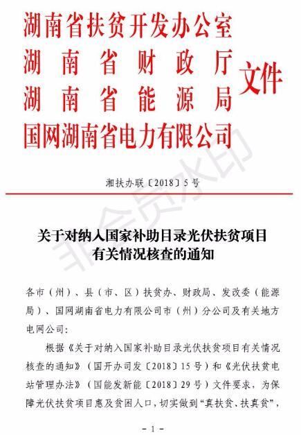 湖南對(duì)納入國(guó)家補(bǔ)助目錄的光伏扶貧項(xiàng)目進(jìn)行核查