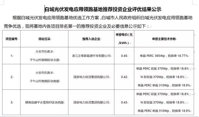 白城光伏發(fā)電應(yīng)用領(lǐng)跑基地推薦投資企業(yè)評(píng)優(yōu)結(jié)果公示