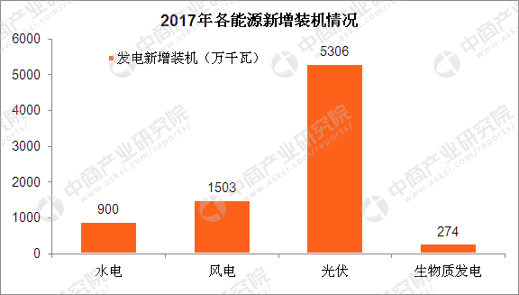 新增裝機(jī)方面,2017年全國(guó)水電新增裝機(jī)約900萬(wàn)千瓦;風(fēng)電新增裝機(jī)1503萬(wàn)千瓦,繼續(xù)保持穩(wěn)步增長(zhǎng)勢(shì)頭,中東部和南方地區(qū)占比50%,風(fēng)電開發(fā)布局進(jìn)一步優(yōu)化,山東、河南、陜西、山西新增裝機(jī)均超過(guò)100萬(wàn)千瓦;生物質(zhì)發(fā)電新增裝機(jī)274萬(wàn)千瓦,累計(jì)裝機(jī)達(dá)到1488萬(wàn)千瓦,同比增長(zhǎng)22.6%;全年生物質(zhì)發(fā)電量794億千瓦時(shí),同比增長(zhǎng)22.7%,繼續(xù)保持穩(wěn)步增長(zhǎng)勢(shì)頭;受上網(wǎng)電價(jià)調(diào)整等多重因素影響,2017年光伏發(fā)電市場(chǎng)規(guī)模快速擴(kuò)大,新增裝機(jī)5306萬(wàn)千瓦,其中,光伏電站3362萬(wàn)千瓦,同比增加11%;分布式光伏1944萬(wàn)千瓦,同比增長(zhǎng)3.7倍。