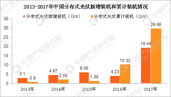受上網(wǎng)電價(jià)調(diào)整等多重因素影響,2017年光伏發(fā)電市場(chǎng)規(guī)??焖贁U(kuò)大,新增裝機(jī)5306萬(wàn)千瓦,其中,光伏電站3362萬(wàn)千瓦,同比增加11%;分布式光伏1944萬(wàn)千瓦,同比增長(zhǎng)3.7倍。2017年我不哦分布式光伏累計(jì)裝機(jī)2966萬(wàn)千瓦,其中,分布式光伏新增裝機(jī)1944萬(wàn)千瓦。
