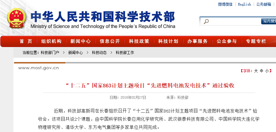 中國儲能網(wǎng)訊:近期,科技部高新司在長春組織召開了“十二五”國家863計劃主題項目“先進(jìn)燃料電池發(fā)電技術(shù)”驗收會。該項目共設(shè)2個課題,由中國科學(xué)院長春應(yīng)用化學(xué)研究所、武漢銀泰科技有限公司、中國科學(xué)院大連化學(xué)物理研究所、清華大學(xué)、東方電氣集團(tuán)等多家單位共同完成。