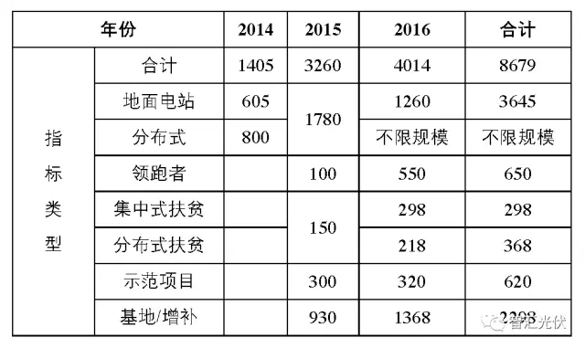 表1:2014~2016年的光伏規(guī)模指標(biāo)(單位:萬kW)