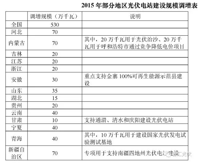 2015年9月24日,國(guó)家能源局根據(jù)上半年的裝機(jī)量情況,下發(fā)了《關(guān)于調(diào)增部分地區(qū)2015年光伏電站建設(shè)規(guī)模的通知》(國(guó)能新能〔2015〕356號(hào)),將當(dāng)年的指標(biāo)調(diào)增了5.3GW。