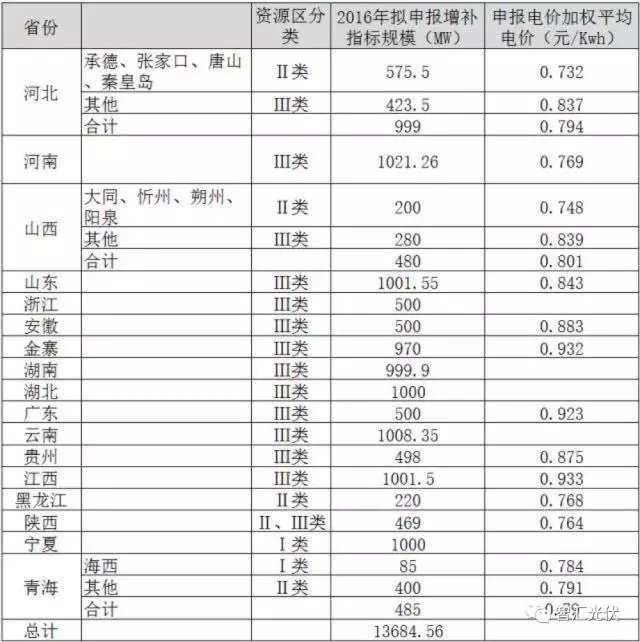 2016年12月22日,國(guó)家能源局發(fā)布了《調(diào)整2016年光伏發(fā)電建設(shè)規(guī)模有關(guān)問題的通知》,據(jù)不完全統(tǒng)計(jì),16省增補(bǔ)總規(guī)模達(dá)12.71GW,并單獨(dú)給金寨調(diào)整了0.97GW,累計(jì)13.68GW,均為需要指標(biāo)的地面電站。