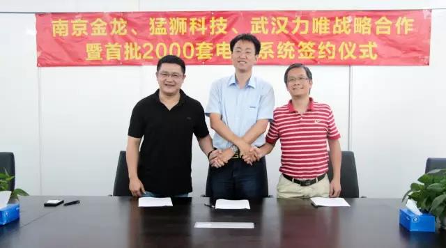 猛獅科技董事長(zhǎng)陳樂伍、南京金龍副總裁董釗志、武漢力唯總經(jīng)理陳錦華代表各自公司在協(xié)議書上簽字,猛獅科技副董事長(zhǎng)賴其聰、福建猛獅新能源副總經(jīng)理林樟芬等領(lǐng)導(dǎo)見證簽約。