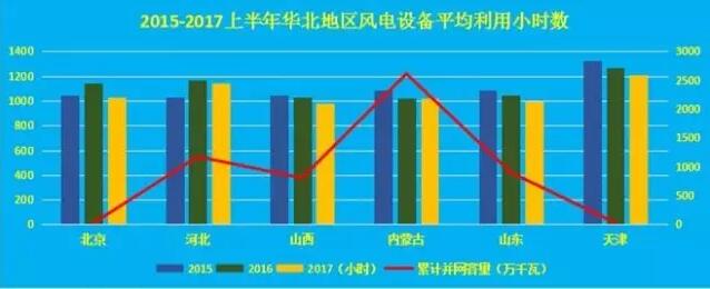 從風(fēng)電設(shè)備利用率上看,華北地區(qū)各個?。ㄗ灾螀^(qū)、直轄市)風(fēng)電設(shè)備平均利用小時數(shù)均高于全國平均水平,其中天津、內(nèi)蒙古、河北分別達(dá)到1208小時、1023小時、1145小時。但是與去年同期相比,華北地區(qū)風(fēng)電設(shè)備利用率普遍偏低。其中北京下滑最為嚴(yán)重,低于去年同期119小時。
