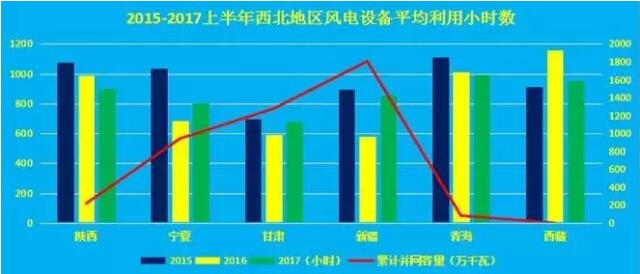 從風(fēng)電設(shè)備利用率上看,上半年,西北地區(qū)棄風(fēng)現(xiàn)象已經(jīng)有了大幅度好轉(zhuǎn)。西北風(fēng)電大省新疆、甘肅、寧夏風(fēng)電設(shè)備平均利用小時數(shù),高于去年同期276小時、91小時、117小時。但是值得關(guān)注的是,與其他區(qū)域橫向比較,西北地區(qū)風(fēng)電設(shè)備利用率依然偏低,今年上半年、除青海省之外,其他各?。ㄗ灾螀^(qū))均低于全國平均水平。