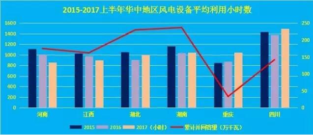 今年上半年,華中地區(qū)新增裝機主要集中在東部,河南、江西成為華中地區(qū)風(fēng)電主要的增長地區(qū)。但是兩地風(fēng)電設(shè)備平均利用小時數(shù)已經(jīng)連續(xù)下滑多年,兩地分別低于去年同期150小時、81小時,低于前年同期352小時、129小時,成為華中地區(qū)風(fēng)電設(shè)備利用率最低的地區(qū),顯然,河南、江西的棄風(fēng)壓力正在逐年加劇。