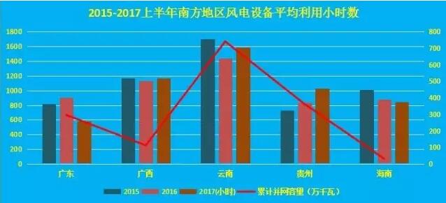 從風(fēng)電設(shè)備利用率上看,云南、貴州、廣西風(fēng)電設(shè)備平均利用小時數(shù)相對較高,分別達(dá)到1592小時、1028小時、1169小時,而處于負(fù)荷中心的廣東省相對較低,僅為584小時,低于全國平均水平高達(dá)400小時。