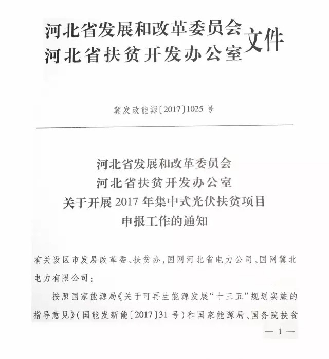 河北2017年集中式光伏扶貧項(xiàng)目開始申報(bào) 總量1G瓦