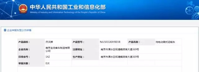 中國(guó)儲(chǔ)能網(wǎng)訊:近日,中華人民共和國(guó)工業(yè)和信息化部發(fā)布了2017年第298批《道路機(jī)動(dòng)車輛生產(chǎn)企業(yè)及產(chǎn)品公告》,配套了猛獅三元鋰離子電池的南京金龍“開(kāi)沃牌”純電動(dòng)廂式運(yùn)輸車NJL5031XXYBEV8和NJL5032XXYBEV8成功入選。