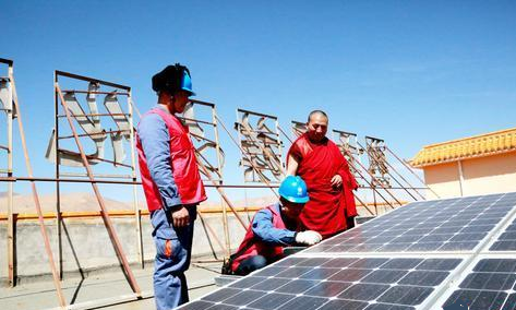 “同仁地區(qū)全年平均有效日照時間約1800小時,非常適合發(fā)展分布式光伏電站。公司對桑杰的這個項目也非常重視,先后多次派人到畫院實地測量、測算,普及國家關于分布式電源建設的相關扶持政策,幫桑杰兄弟們算經濟賬?!瘪R承明說,國網黃化供電公司“一站式”服務畫院分布式光伏電站項目建設,堅持就近發(fā)電、就近使用、就近并網,從項目投建到并網消納進行全流程指導。主動與光伏組件生產廠家溝通,對存在的問題提出整改意見。經過一番咨詢、測算,最終畫院裝機為62.4千瓦的分布式光伏發(fā)電項目上馬,經過兩個月建設,去年8月13日正式并網發(fā)電。9月,畫院實施了電熱膜取代燃煤取暖項目,共鋪設電熱膜450平米。