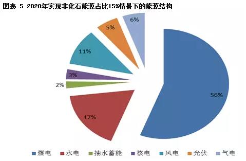“15%”的目標(biāo)倒逼國內(nèi)能源產(chǎn)業(yè)結(jié)構(gòu)調(diào)整。根據(jù)電力“十三五”規(guī)劃,2020年非化石能源發(fā)電裝機需達(dá)到7.7億千瓦,裝機占比提高到39%,發(fā)電量占比提高到31%;天然氣發(fā)電裝機達(dá)到1.1億千瓦;煤電裝機控制在11億千瓦以內(nèi),裝機占比降至55%左右。