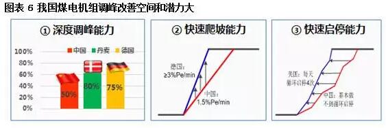 在上述措施中,全面提升電力供應(yīng)的靈活性,提高電力系統(tǒng)的調(diào)峰能力是解決棄風(fēng)、棄光問題的重要手段。從裝機容量和運行特性看,火電機組大有可為。目前火力發(fā)電的變負(fù)荷能力與丹麥、德國、美國等國家存在較大差距,有很大改善的空間與潛力。