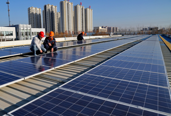 12月16日,電力工人在屋頂光伏電站檢查光伏發(fā)電板的質(zhì)量。近日,秦皇島市裝機(jī)容量131.97KW的商業(yè)屋頂光伏電站——秦皇島億嘉集團(tuán)-兆嘉建筑工程有限公司屋頂光伏電站并網(wǎng)投運(yùn)。據(jù)介紹,該商業(yè)屋頂光伏電站是秦皇島首個(gè)大型的商業(yè)屋頂光伏電站,預(yù)計(jì)年發(fā)電量16萬(wàn)度。新華社發(fā)