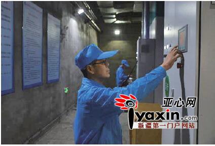 華源天新新能源有限公司工作人員操作電鍋爐調(diào)節(jié)供熱參數(shù)。