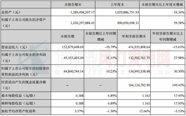 中國(guó)儲(chǔ)能網(wǎng)訊:金雷風(fēng)電近日發(fā)布2016年第三季度報(bào)告。報(bào)告稱(chēng),金雷風(fēng)電第三季度實(shí)現(xiàn)營(yíng)業(yè)收入1.53億元,同比下降10.79%;實(shí)現(xiàn)凈利潤(rùn)4534.54萬(wàn)元,同比增長(zhǎng)11.15%;前三季度實(shí)現(xiàn)營(yíng)業(yè)總收入4.15億元,同比下降15.63%;實(shí)現(xiàn)凈利潤(rùn)1.33億元,同比增長(zhǎng)27.98%。