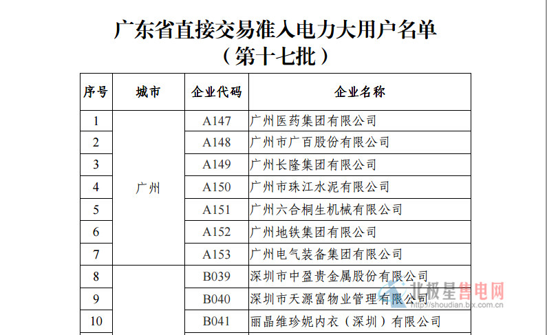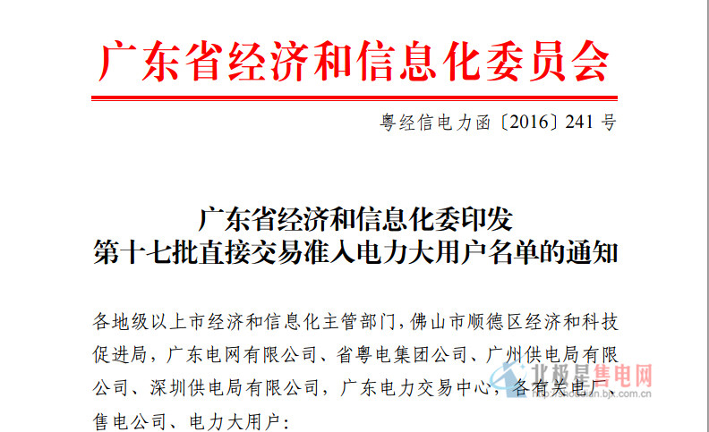 廣東省經(jīng)濟和信息化委印發(fā)第十七批直接交易準入電力大用戶名單的通知