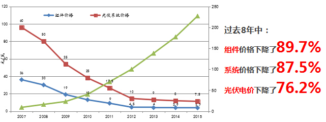 談及光伏成本下降的原因時(shí)陳曉達(dá)說(shuō)到,“裝機(jī)容量擴(kuò)大帶動(dòng)關(guān)鍵設(shè)備生產(chǎn)規(guī)模擴(kuò)大,攤薄成本以及企業(yè)不斷技術(shù)進(jìn)步和技術(shù)創(chuàng)新,轉(zhuǎn)換效率不斷提升導(dǎo)致了價(jià)格下降。”