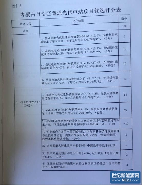 附:內蒙古自治區(qū)普通光伏電站項目優(yōu)先評分表