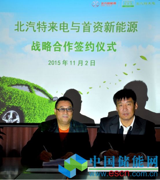 北汽特來電副總經(jīng)理張濤與北京首資新能源總經(jīng)理李根簽訂戰(zhàn)略合作協(xié)議