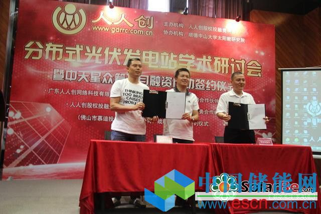 9月19日上午,由人人創(chuàng)股權(quán)投融資平臺(tái)舉辦的“分布式光伏發(fā)電站學(xué)術(shù)研討會(huì)暨中天星眾籌項(xiàng)目融資成功簽約儀式”,在佛山南海區(qū)里水鎮(zhèn)東部工業(yè)區(qū)中金路1號(hào)中企綠色總部中心隆重舉行。其中,光伏專家團(tuán)隊(duì)、互聯(lián)網(wǎng)金融資深人士、資深投資人、社會(huì)各界特邀嘉賓,及廣佛地區(qū)多家主流媒體出席了活動(dòng)現(xiàn)場,共同見證全國首個(gè)眾籌分布式光伏發(fā)電站在佛山誕生。