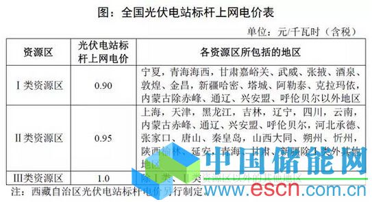 圖1:全國(guó)光伏電站標(biāo)桿上網(wǎng)電價(jià)表