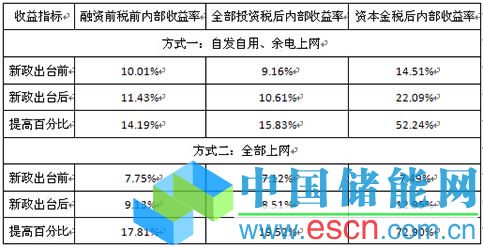 根據(jù)以上條件,測算項目銷售的加權(quán)電價為1.0692元/kWh。經(jīng)測算,新政出臺前后收益提高情況見下表。