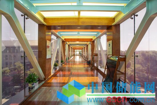 漢能BIPV項(xiàng)目中,連廊采光頂采用彩色薄膜發(fā)電組件
