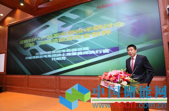 漢能薄膜發(fā)電集團(tuán)副主席兼首席執(zhí)行官代明芳介紹公司發(fā)展戰(zhàn)略