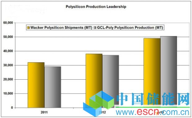 中國(guó)儲(chǔ)能網(wǎng)訊:盡管保利協(xié)鑫(GCL-Poly)多年來(lái)一直在多晶硅額定產(chǎn)量排名中榮登榜首,但是其實(shí)際上生產(chǎn)的多晶硅比其最接近的競(jìng)爭(zhēng)對(duì)手瓦克化學(xué)(Wacker Chemie)少。然而,該中國(guó)生產(chǎn)商似乎在2013年首次被其德國(guó)競(jìng)爭(zhēng)對(duì)手打擊。