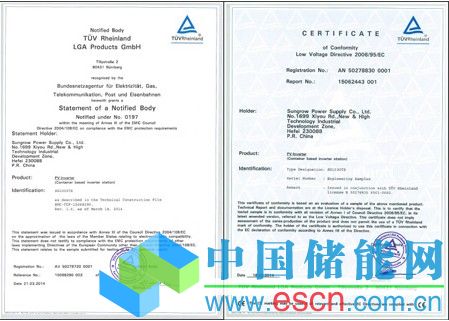 中國儲能網(wǎng)訊:日前,陽光電源自主研發(fā)的的MW級集裝箱式解決方案SG1000TS順利通過德國萊茵TüV認證,成為國內(nèi)第一家獲得該認證的光伏系統(tǒng)接入解決方案的領(lǐng)軍產(chǎn)品。