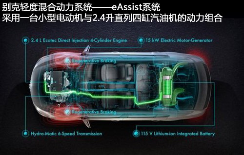 新款君威將采用與君越相同的混動技術(shù)——eAssist輕度混合動力技術(shù),eAssist油電混合動力系統(tǒng),將SIDI智能直噴發(fā)動機(jī)與智能電力驅(qū)動技術(shù)完美結(jié)合,實(shí)現(xiàn)油與電的能量轉(zhuǎn)換和互補(bǔ),這套動力系統(tǒng)將由一臺2.4升直列四缸汽油發(fā)動機(jī)和一組電動系統(tǒng)(11kW、107Nm的電動機(jī)搭配115V電壓鋰電池)組成。