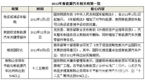 此外,其他新能源汽車相關(guān)政策正待出臺(tái),如《節(jié)能與新能源汽車產(chǎn)業(yè)發(fā)展規(guī)劃(2011~2020年)》預(yù)計(jì)將會(huì)在2012年出臺(tái)。
