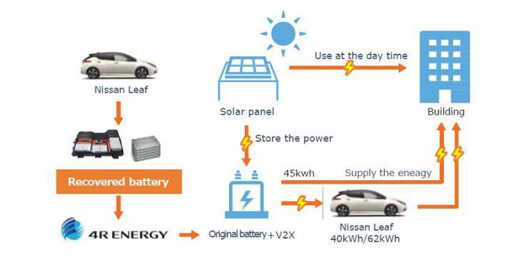 在過(guò)去的兩年中,日本有超過(guò)800萬(wàn)戶家庭因自然災(zāi)害而斷電。日產(chǎn)汽車(chē)為應(yīng)對(duì)這種大面積斷電情況,開(kāi)發(fā)了一種使用車(chē)輛到電網(wǎng)技術(shù)的系統(tǒng),該系統(tǒng)允許客戶使用聆風(fēng)的動(dòng)力電池組為建筑物供電。自2019年9月以來(lái),日產(chǎn)已經(jīng)研發(fā)出利用舊的聆風(fēng)電池組改造為固定式儲(chǔ)能單元,并存儲(chǔ)再生能源,以日本神奈川縣的部分7-11便利店作為試點(diǎn),驗(yàn)證該系統(tǒng)的應(yīng)急供電能力。